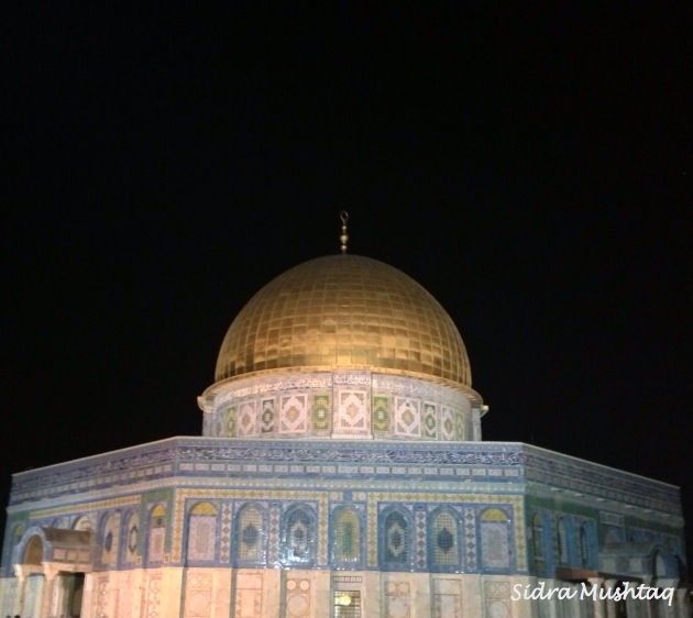 The coach journey to our hotel in Jerusalem went smoothly, we did not get stopped at any checkpoints. Our hotel was located on the top of Mount of Olives, which provided us with a panoramic view of Jerusalem. As we reached our hotel and got off the coach, our eyes witnessed the splendid Dome of the Rock Masjid (Masjid Qubbat As-Sakhrah) for the first time. It felt surreal; we actually made it to al-Quds! I was rather overwhelmed, so the first thing I did before even checking into my room was call my mother back in the UK. I wanted to share the moment of being in a blessed place with her. My mother was thrilled that we had made it to Jerusalem safely, especially since it was the blessed night of the Isra wal Miraj the following night.